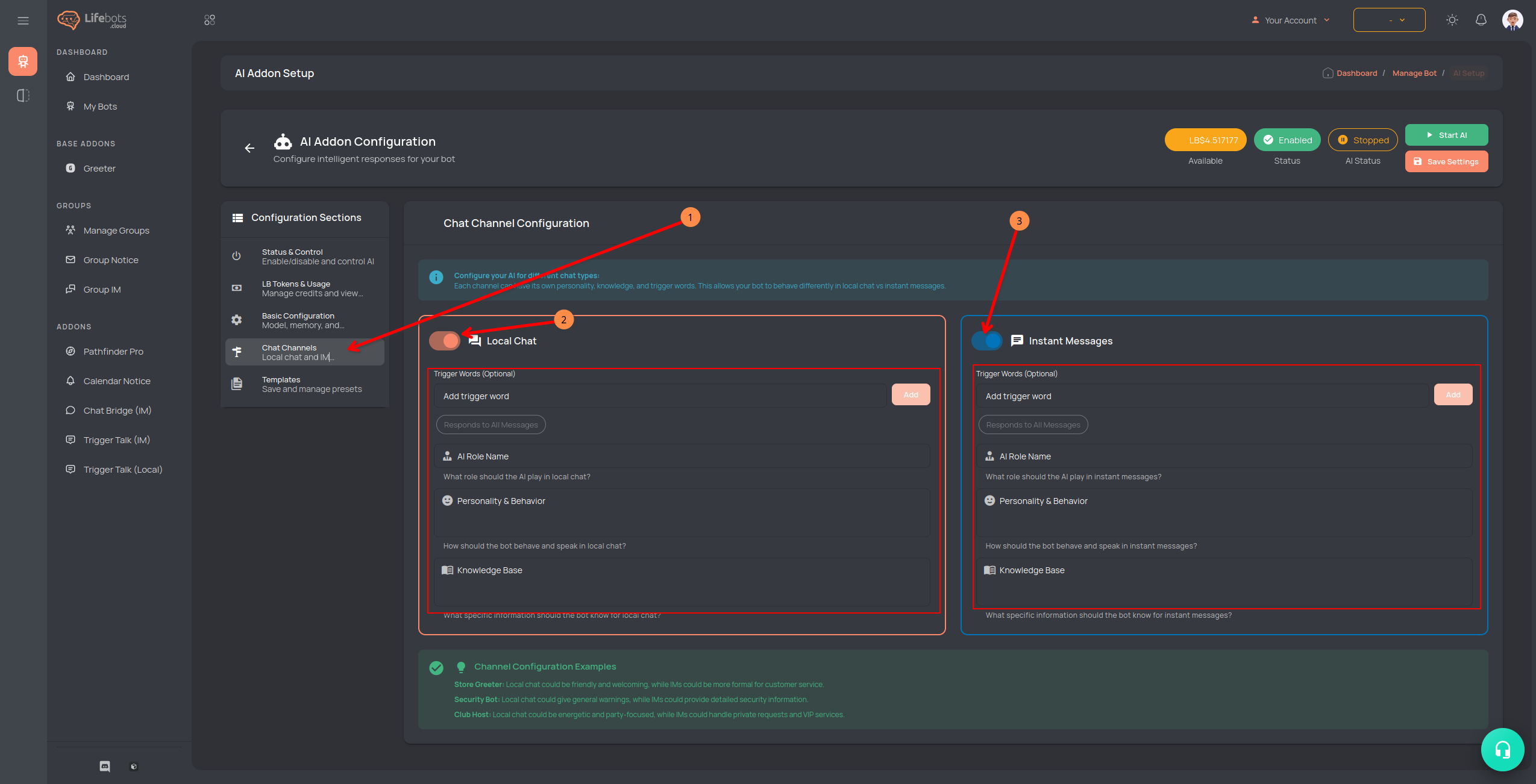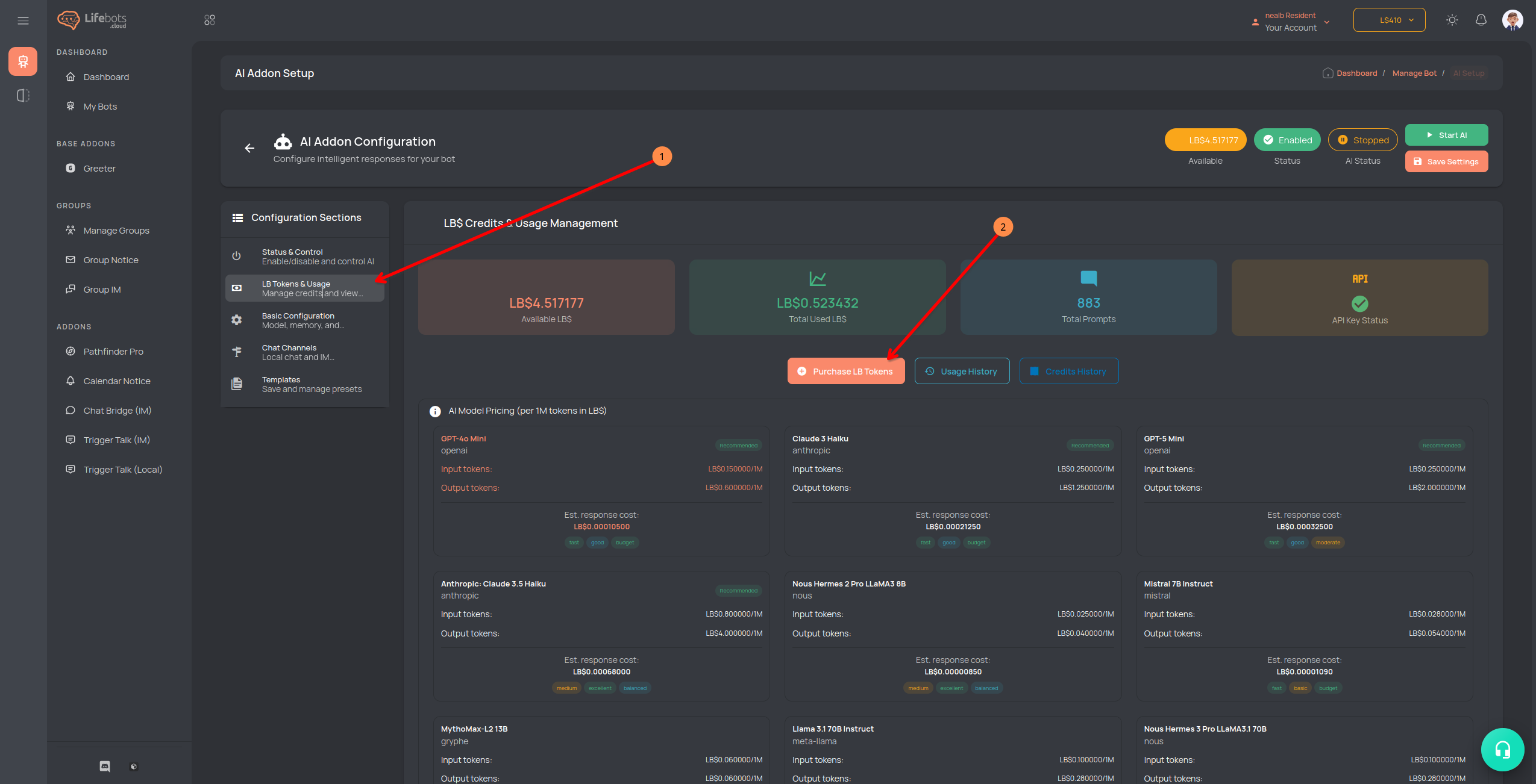 πΉ Once enabled, youβll need LB Tokens (credits) to use AI.
