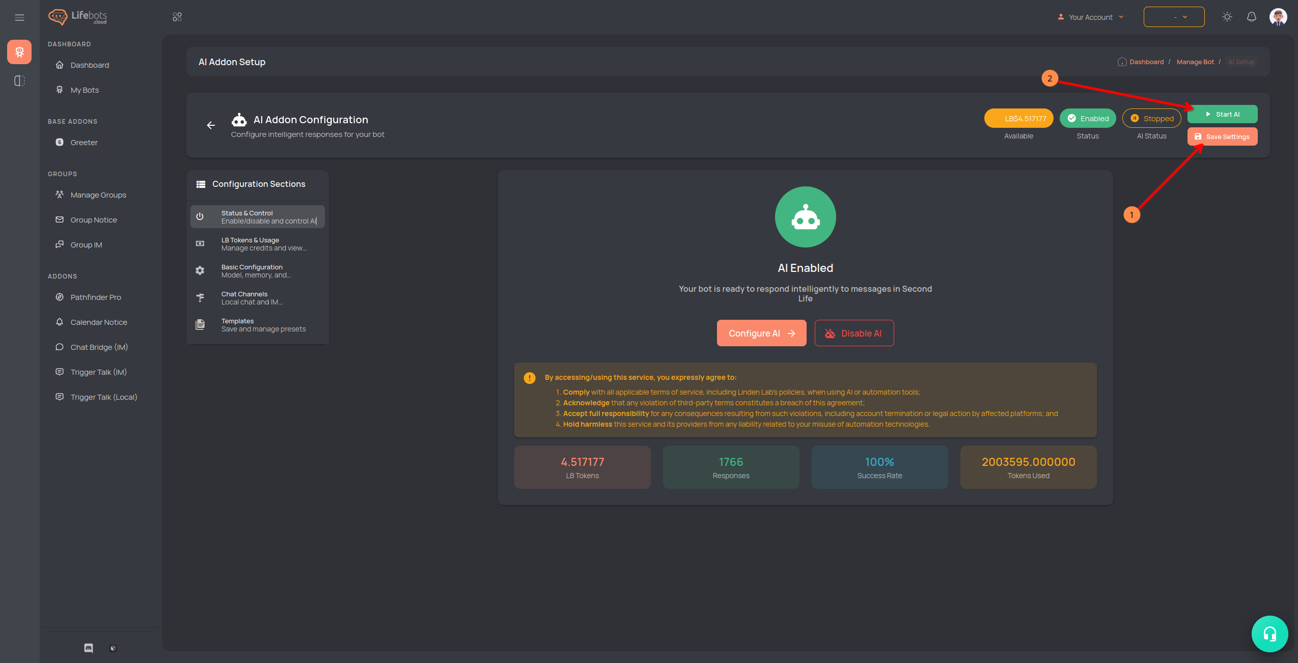 6. Save & Start AI